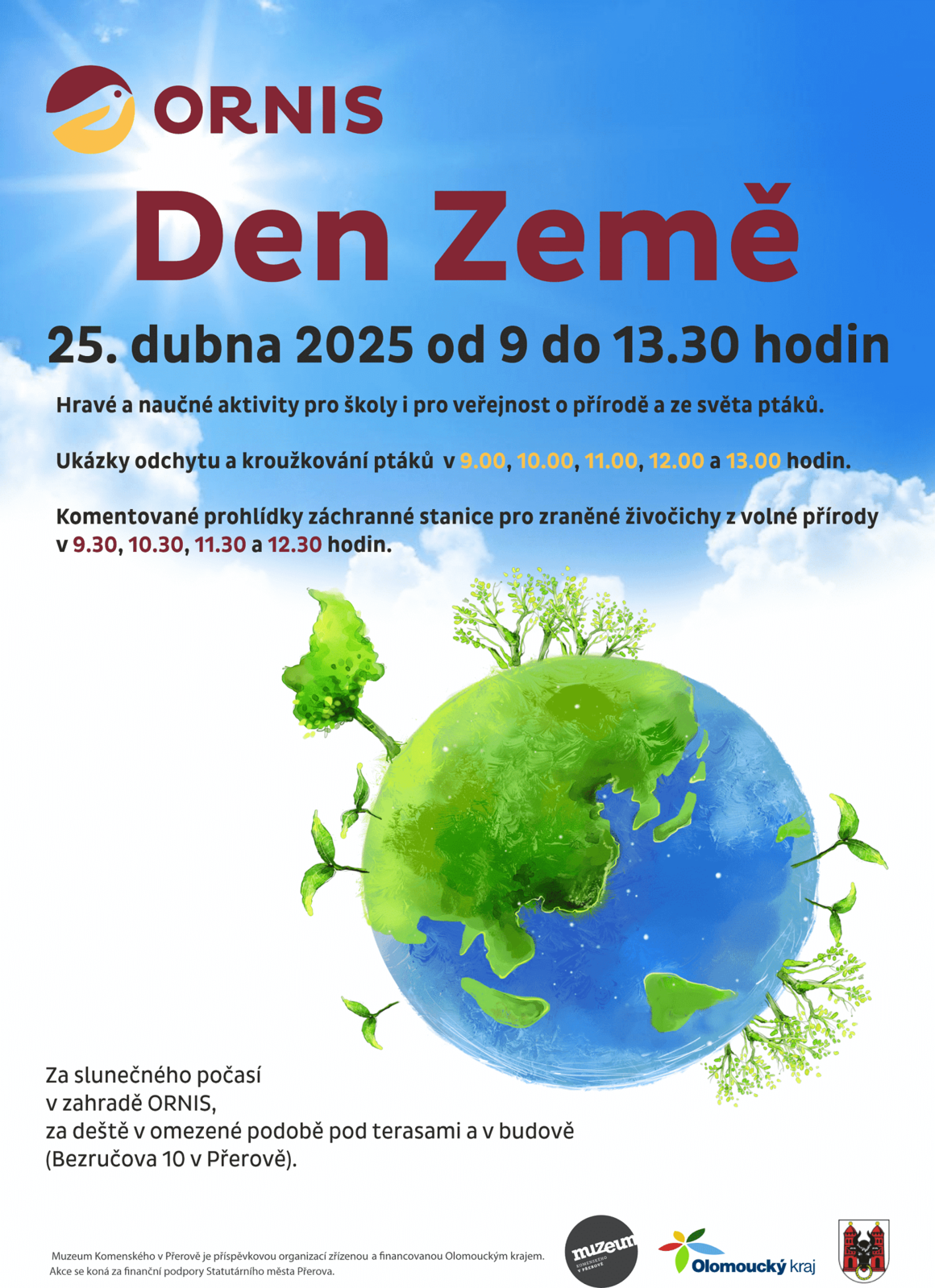 Muzeum Komenského v Přerově nabízí program na měsíc duben 2025 a společně s ním i pozvánku do ornitologické stanice na výstavu o vědecké ilustraci s názvem Věda malebná, která bude zahájena slavnostní vernisáží ve čtvrtek 3. dubna v 17 hodin. Ekoporadna ORNIS ve spolupráci s dalšími organizacemi Vás zve na oslavy Dne Země v Přerově. V sobotu 12. dubna se můžete vydat na Pochod Přerovské mosty, 25. dubna můžete navštívit přerovskou hvězdárnu, projít si Stezku Země, nebo navštívit ornitologickou stanici, kde Vás čekají ukázky odchytu a kroužkování ptáků, komentované návštěvy záchranné stanice a hravé aktivity o přírodě. V pátek 18. dubna můžete při příležitosti Mezinárodního dne památek navštívit stálé expozice Muzea Komenského v Přerově zdarma. Komentované prohlídky proběhnou v 9.30, 11.00, 13.30 a 15.00. V neposlední řadě bychom Vás rádi pozvali do Galerie Konírna v Lipníku nad Bečvou na výstavu Hrad Helfštýn, 894 dní v rekonstrukci. Vernisáž výstavy proběhne 10. dubna v 16 hodin.