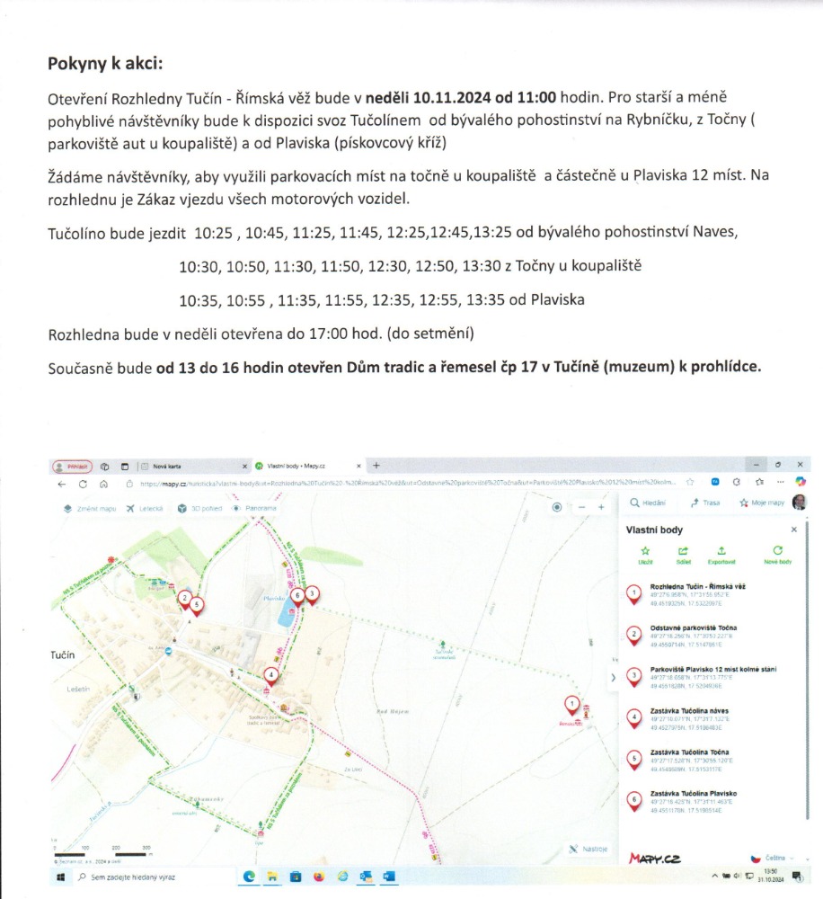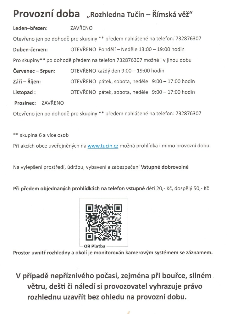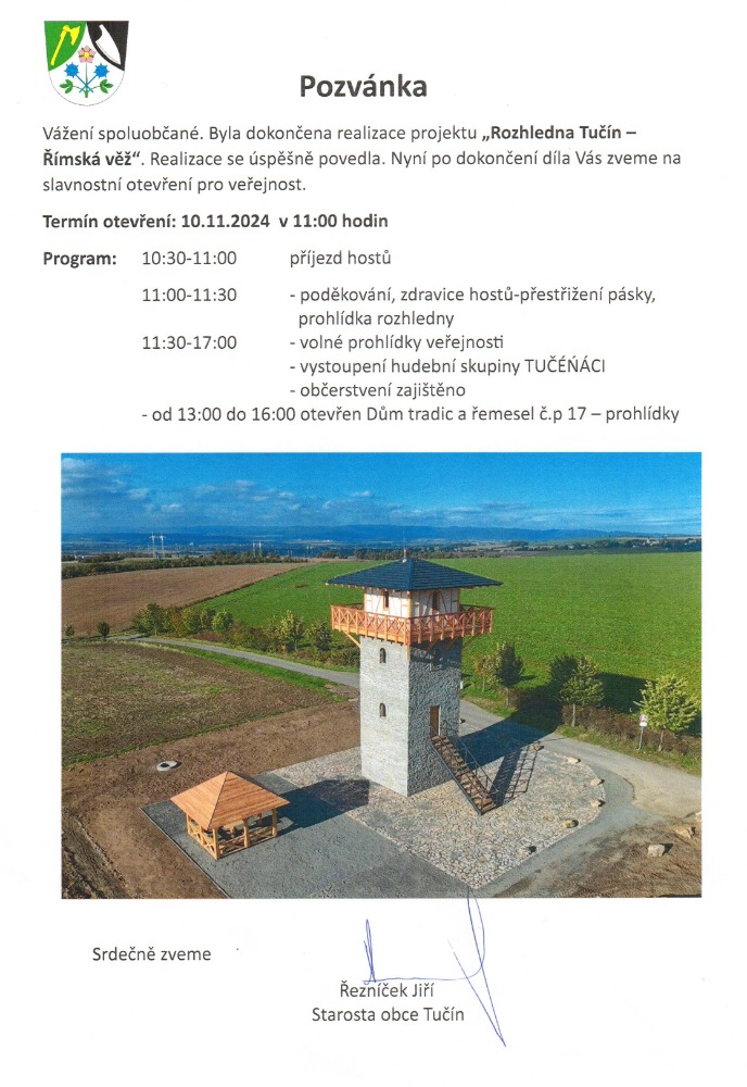 Obec Tučín zve na slavnostní otevření rozhledny "Římská věž" pro veřejnost. Akce proběhne 10.11.2024 v 11.00 hod.