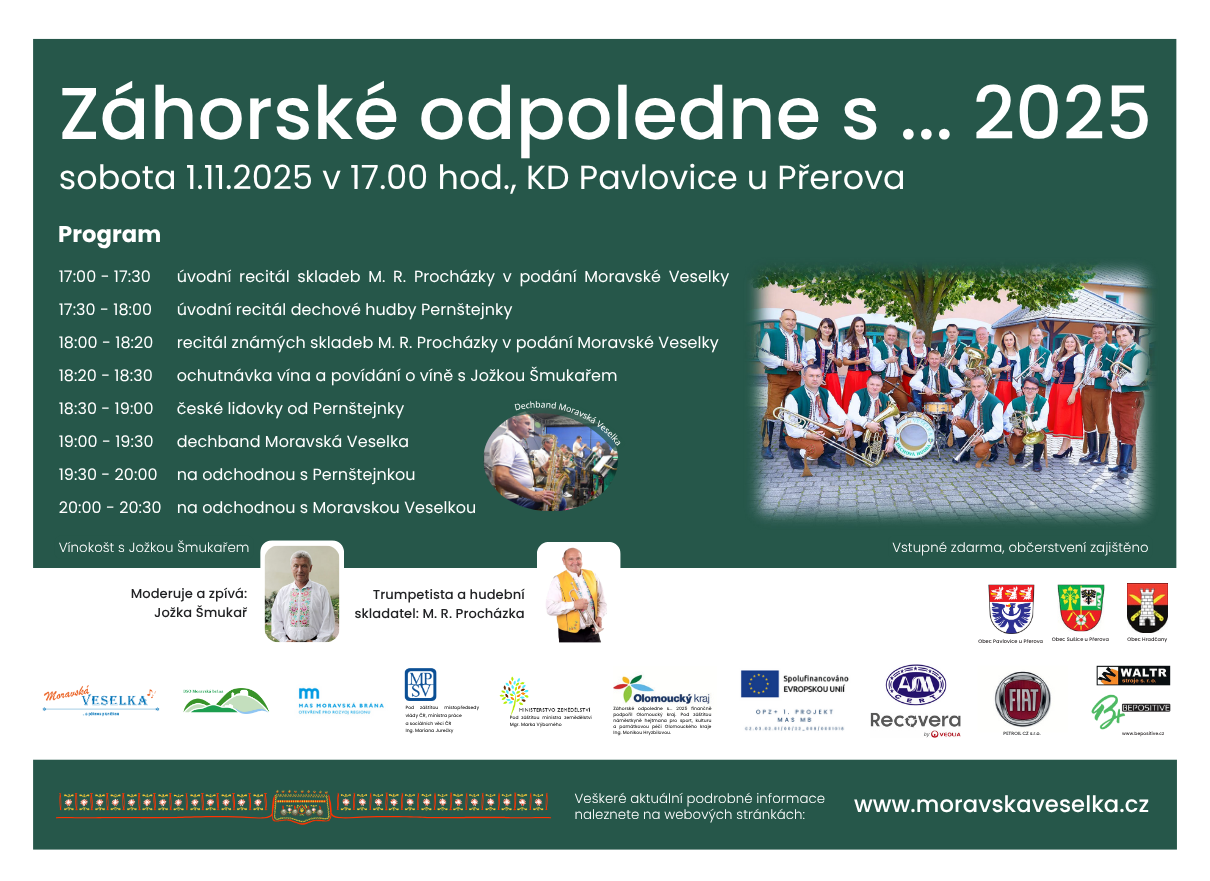 Záhorské odpoledne s ... 2025 proběhne v sobotu 01.11.2025 v Kulturním domě v Pavlovicích u Přerova.