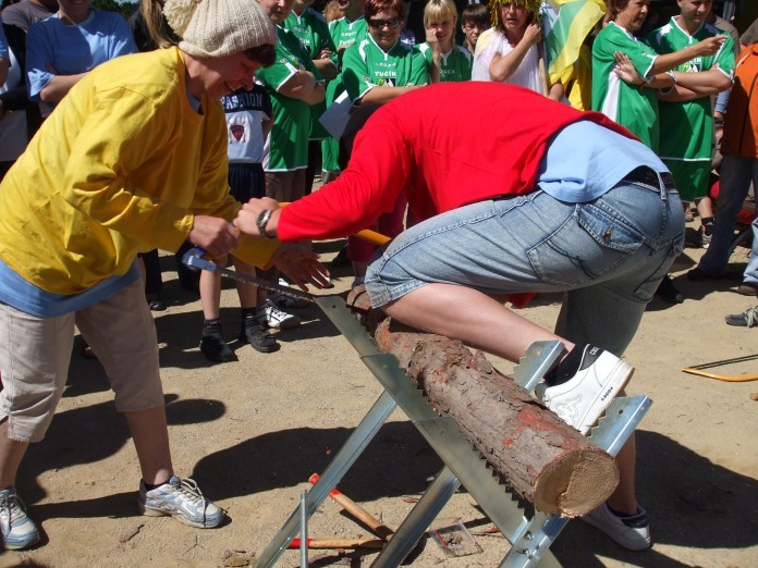 řezání špalků nebylo naší nejsilnější disciplínou, ale pobavili jsme nejvíc diváků