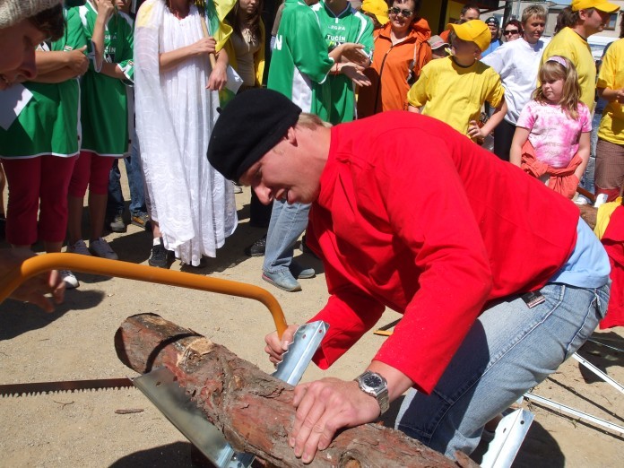 řezání špalků nebylo naší nejsilnější disciplínou, ale pobavili jsme nejvíc diváků
